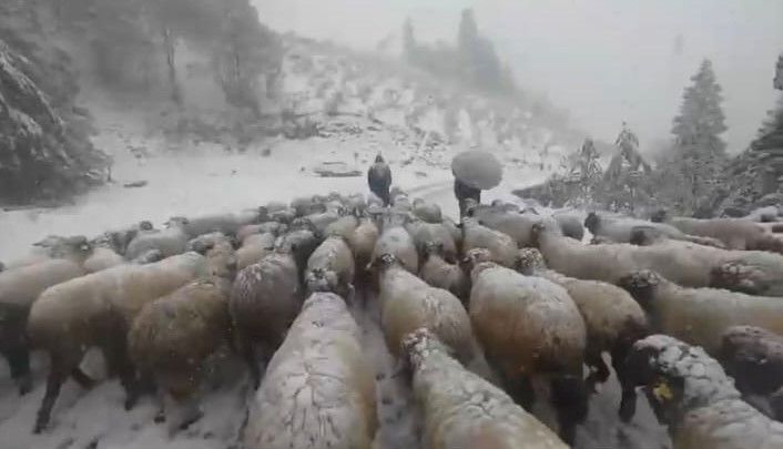 Doğu Karadeniz’in yüksek kesimlerinde hafta sonundan bu yana etkili olan kar yağışı ile birlikte yaylaları sürüleri ile birlikte terk eden çobanlar Kasım ayı sonuna kadar kalacakları mezralarına ulaştılar.