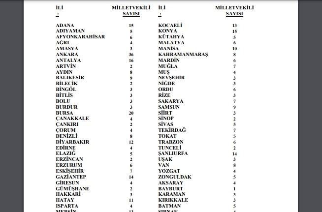 Türkiye genelinde en çok milletvekili çıkartacak şehirler İstanbul (98 vekil), Ankara (36 vekil), İzmir (28 vekil) ve Bursa (20 vekil) olarak sıralandı.