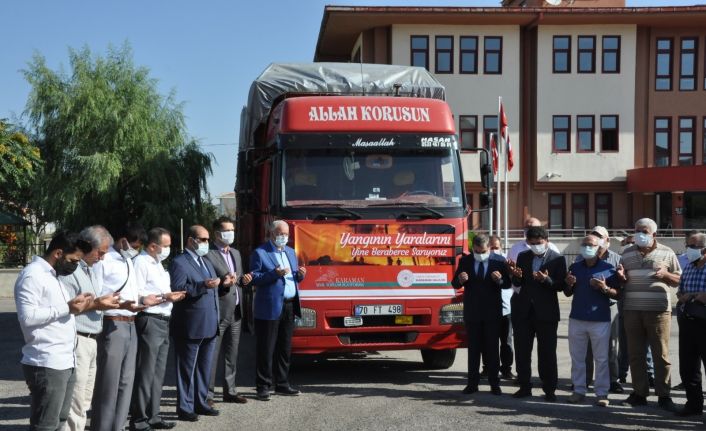 Yangın bölgesinde zarar gören ailelere Karaman Valiliği tarafından beyaz eşya kampanyası başlatıldı. 3 hafta önce başlatılan kampanya kapsamında toplanan yardımlar törenle Antalya’nın Manavgat ilçesine bağlı Belenobası köyüne gönderildi.