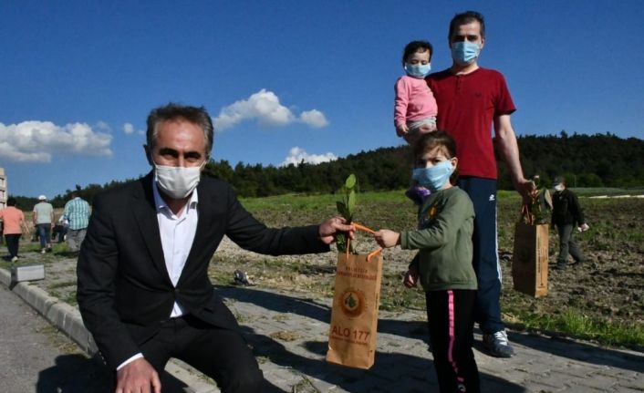Karantinada kalan vatandaşlar ve çocukları fidan dikti