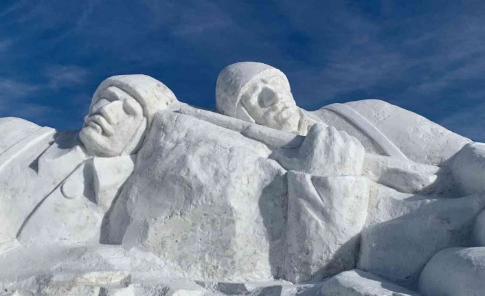 Sarıkamış Harekatı’nın 107. yılı anma etkinlikleri kapsamında sergilenecek kardan heykellerin yapımı tamamlandı.