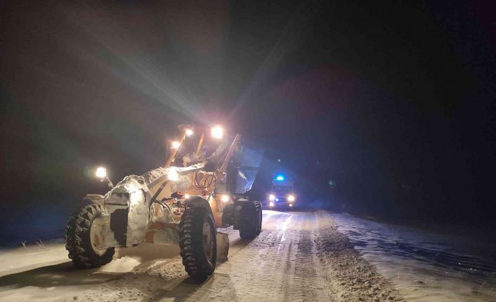 Kangal’da sağlık ekiplerinin kar ve tipi nedeniyle ulaşamadığı hastaya iş makinelerinin çalışmasıyla ulaşıldı.