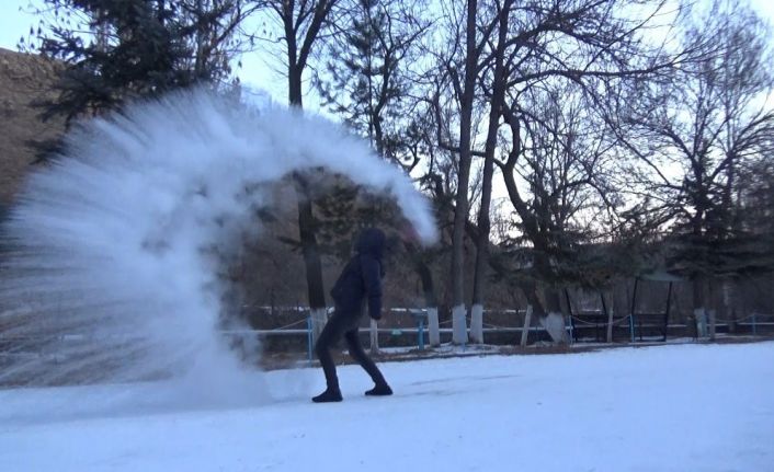 Kars, yeni yılın ilk günlerinde dondurucu soğuklarla mücadele ediyor. Kentte sabah erken saatlerde termometreler eksi 17 dereceyi gösterdi. Soğuk havanın etkisiyle şehir adeta buz tuttu. Bir vatandaşın dışarıda havaya serptiği sıcak su ise hemen dondu.