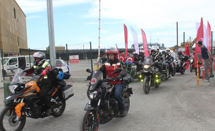 Türk bayrakları ile donatılan motosiklet sürücüleri, İnebolu’dan alkışlar eşliğinde Ankara’ya uğurlandı.