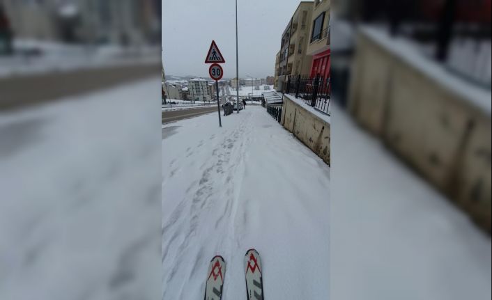 Türkiye’de kar yağışı devam ederken, Bursa’da bir vatandaş karın yağmasını fırsata çevirdi. Şehir merkezinde kayakla markete giden vatandaş o anları kayıt altına aldı.