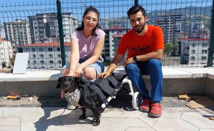 Samsun’da trafik kazası sonucu arka ayakları felç olan köpeğe sahip çıkan 2 arkadaş, yürüteçle yürüttükleri köpeğe şefkat göstererek örnek davranışta bulundu.