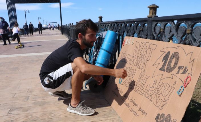 Şehirleri gezerek insanların dertlerini 10 TL karşılığında dinleyen 23 yaşındaki Aytaç Şimşek, kendisini derdiyle ağlatabilene ise 100 TL veriyor.