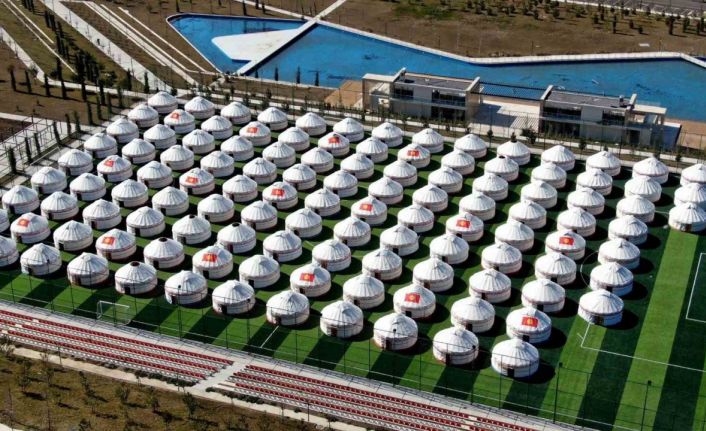Kırgızistan’dan getirilen 108 kıl çadır, Kahramanmaraş’ta Millet Bahçesi içerisindeki futbol sahasına kuruldu.