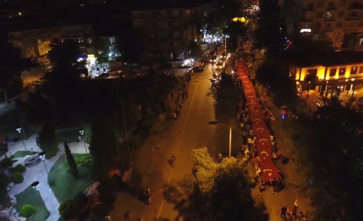 Kırıkkale’de 71 metrelik dev Türk bayrağı ile demokrasi yürüyüşü