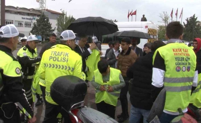 Vali Yardımcısı Ahmet Ferhat Özen de trafikte görünürlüklerinin artması için motosiklet sürücülerine reflektif yelek ve güvenli motosiklet kullanımı bilgilerini içeren el broşürü hediye etti. Sürücülere ayrıca trafik kuralları konusunda hatırlatmalarda bulunuldu. İl Emniyet Müdürü Fahri Bulut ise çocuklara hediye edilen kırmızı düdüklerin kullanımı ile ilgili bilgiler verdi.