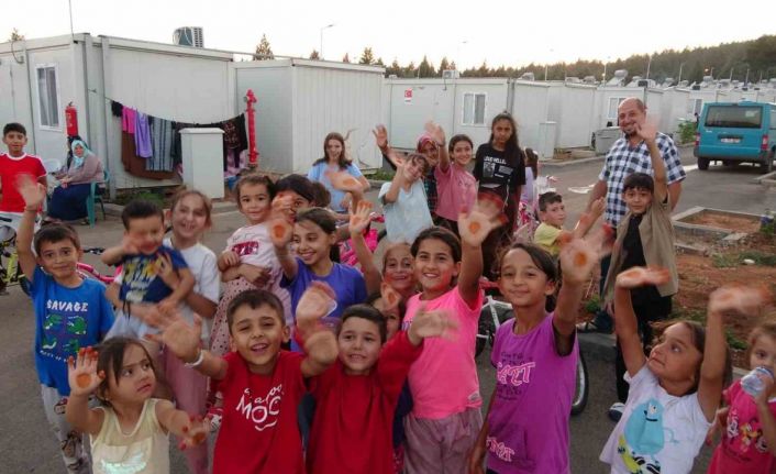 Kahramanmaraş’ta konteyner kentte dron gören depremzede çocukların sevgisi yine dron kamerası ile kaydedildi.