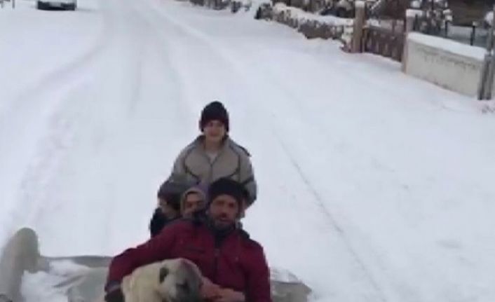 Köy sakinlerinden Muhammed Aksu, “Karda kaymak için bir düzenek yaptık. Köydeki çocuklarla hep birlikte oynamak için yaptık. Kanepeyi koyduk. Köpeğimizi de aldık yanımıza. Ben İstanbul’dan Sivas’a sırf bunun için geldim’’ dedi.