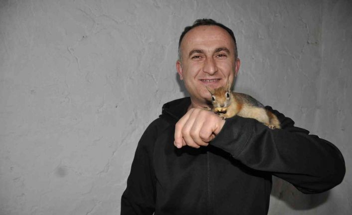 Hakkari’nin Yüksekova ilçesine bağlı Yeşiltaş köyünde öğretmenlik yapan Nizamettin Atılgan, evinde beslediği sincaba çocuğu gibi bakıyor.