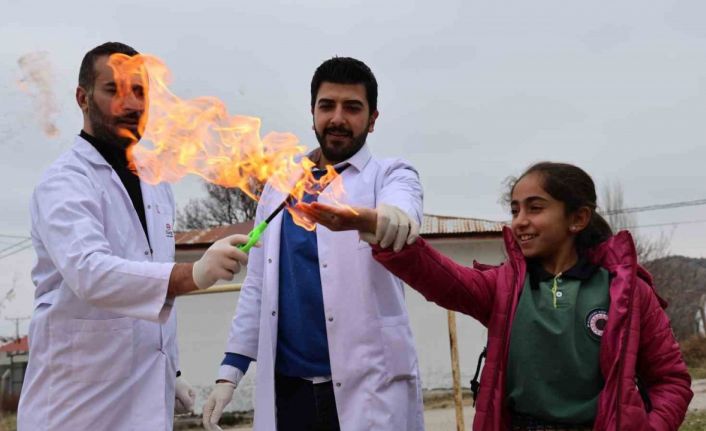 Köy okulu çocuklarına bilimsel etkinliklerle moral oldular