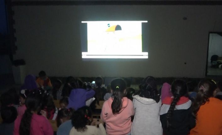 Muş’un Aşağı Yongalı köyünde kurulan açık hava sineması ile çocuklar hayatlarında ilk kez sevdikleri kahramanların filmlerini sinema ortamında izledi.