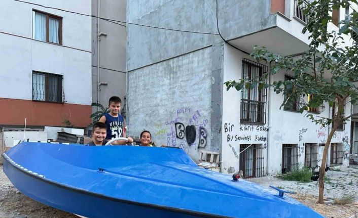 İstanbul Küçükçekmece’de sokağa bırakılan tekne çocukların oyun alanı haline geldi. Çocuklar teknede oyunlar oynayarak eğlenirken, o anlar cep telefonu kamerasıyla kaydedildi.