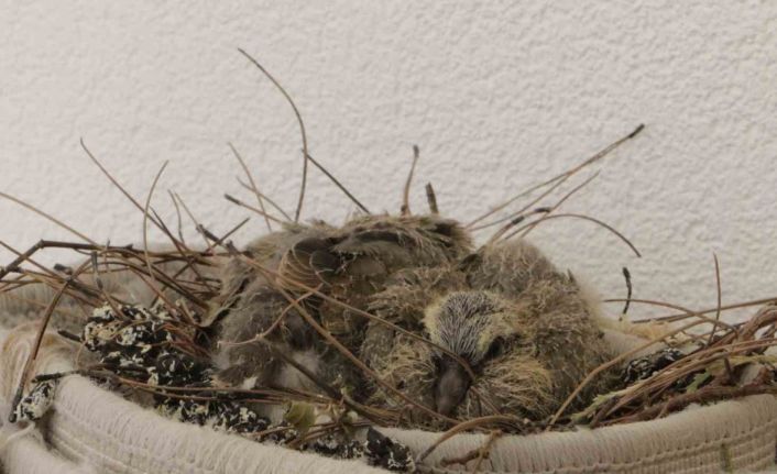 Bir süre sonra 2 yavru kumrunun yumurtadan çıktığını fark eden Karahan, gündüzleri yavruların annesinin gittiğini her gördüğünde sıcak havalardan dolayı yanlarına su bıraktığını söyledi.