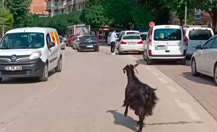 Bursa’da sahibinin aracından kaçan keçi, şehrin merkezinde trafiği birbirine kattı. Araçlar arasından kaçarak sahibine izi kaybettiren keçi, vatandaşlar tarafından yakalanarak belediyeye teslim edildi.