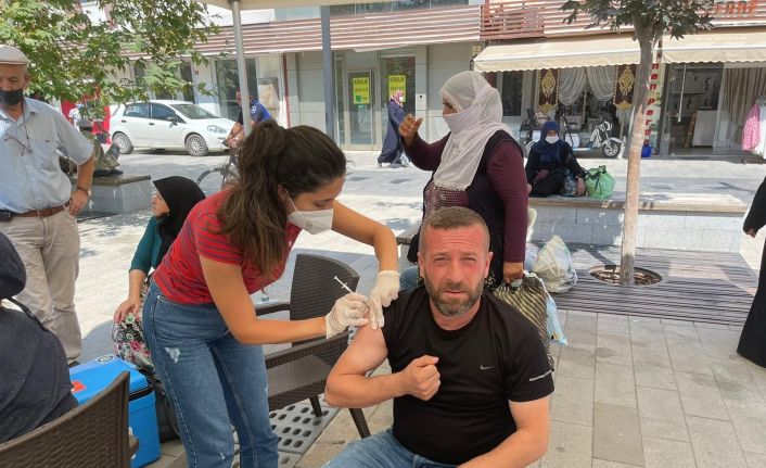 Belediye binası önüne kurulan çadırda Covid-19 aşısı yapılıyor. Çadırlarda yapılan Covid-19 aşısına vatandaşlar ilgi gösteriyor. Konuyla ilgili açıklama yapan yetkililer, “Aşılamada daha hızlı olmak ve toplumun her kesimine ulaşmak için açılan aşı çadırlarına halkımız ilgi gösteriyor. Salgında en büyük silahımız aşı ve bu hastalığı aşıyla yenebiliriz. Sırası gelen vatandaşlarımız aşılarını yaptırsınlar" dedi.