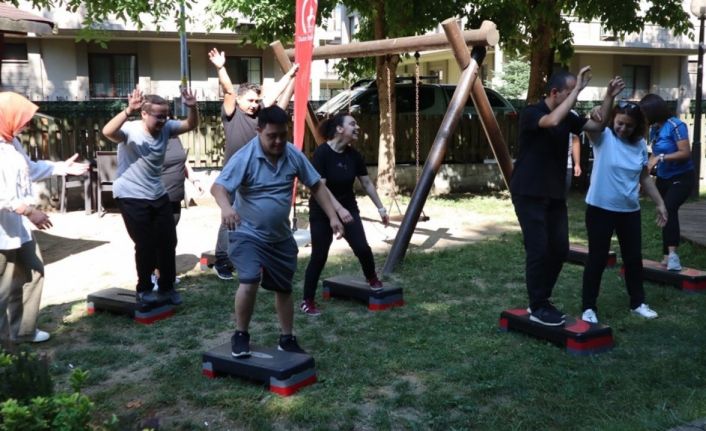 Eğitmenlerin gösterdiği hareketleri yapmak için çaba sarf eden özel çalışanlar, bir yandan spor yaparken bir yandan da eğlenceli zaman geçirerek güne başladı.