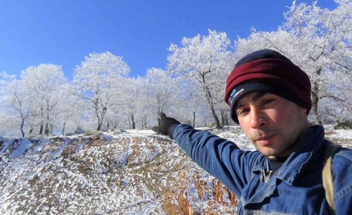 Kumarı Mahallesi Radar bölgesinde oturan vatandaşlar, çam, meşe ve ladin ağaçlarının kırağılı görüntüsünün, ayrı bir güzelliği de gözler önüne serdiğini ifade ettiler.