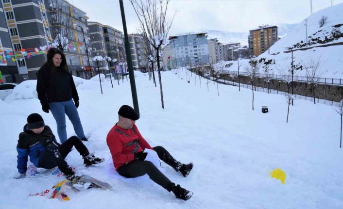 Muş’ta etkili olan kar yağışının ardından okulların tatil edilmesini fırsat bilen vatandaşlar, karın keyfini doyasıya çıkardı.