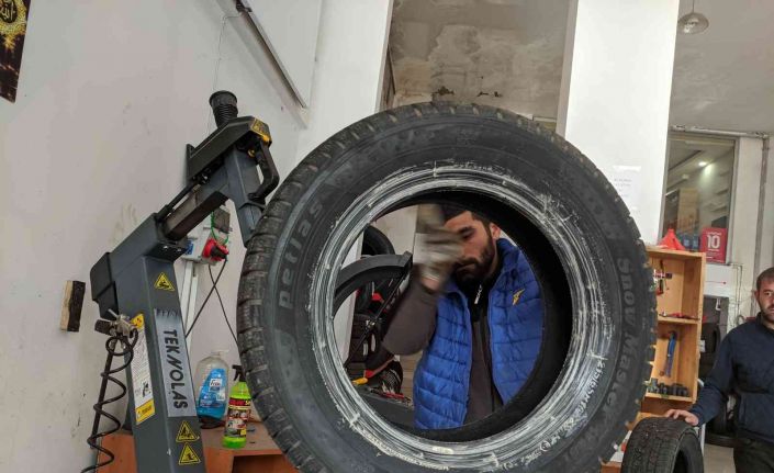 1 Aralık itibarıyla kış lastiği taktırma zorunluğu sebebiyle vatandaşlar lastik tamircilerinin yolunu tutarken, lastikçilerde de yoğun mesai başladı.