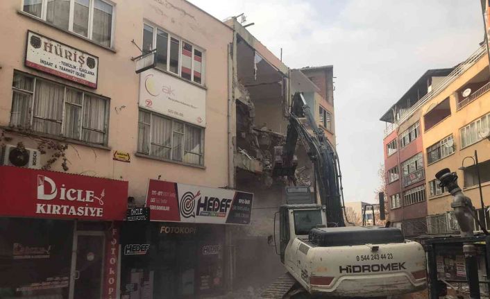 Malatya’nın Saray Mahallesi’nde depremde ağır hasar gören bir bina daha kontrollü bir şekilde yıkıldı.