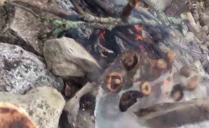 Sivas’ın Koyulhisar ilçesinde taşın üzerinde mantar pişiren vatandaşın ziyafeti yarıda kaldı. Ateşe maruz kalan taşın patladığı anlar cep telefonu kamerasına yansıdı.