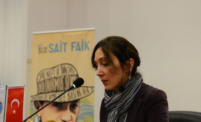 Pelin Aslan Ayar, söyleşide Sait Faik’in Lüzumsuz Adam kitabından “İp meselesi” isimli öyküsünü okuyarak verdiği mesajlara dikkat çekti.