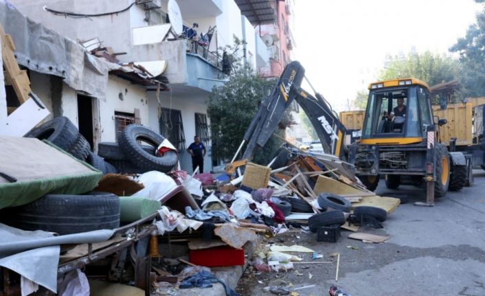 Mersin’de bir vatandaşın evinde ve sokakta biriktirdiği tonlarca atık, belediye ekiplerince temizlendi.