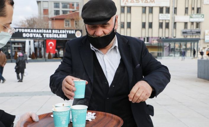 Afyonkarahisar’da “15 Aralık Dünya Çay Günü” dolayısıyla Belediye Başkanı Mehmet Zeybek’in talimatı ile Zafer Meydanında vatandaşlara belediye tarafından pandemi kurallarına uygun olarak çay ikramında bulunuldu.