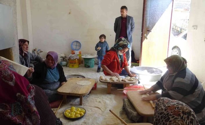 Karaman’ın Ermenek ilçesinde muhtarlık yapan Sadettin Gökce, mahallelinin Ramazan ayında yiyeceği ekmeklik hamurunu yoğurdu.
