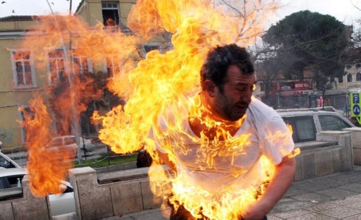 6 Şubat 2010’da meydana elinde benzin bidonuyla gelen Cemalettin Alış (39), etrafa “Beni yaktılar, dışarı çıkacak yüzüm kalmadı. 1 milyon TL dolandırıldım. Benim olmayan borçlar yüzünden icralarda sürünüyorum yardım edin" diyerek bağırdıktan sonra elindeki belgeleri gösterirken, bir anda çakmağı çakarak, alevler içerisinde kalmıştı. Montu, kazağı, atleti tutuşan Alış, etrafa koşarak üzerindekileri çıkartmaya çalışmıştı. Yanan elbiselerini çıkarmayı başaran Alış’ın yüzünde ve vücudunda ciddi yanıklar oluşmuştu. Benzin bidonunu tekrar eline alan Alış, kendini bir daha yakmakla tehdit ederken, bir anda kendinden geçerek yere düşmüştü. O dehşet anları ise İhlas Haber Ajansı’na(İHA) objektiflerine yansımıştı.