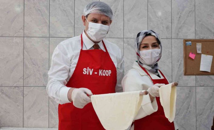 Kadın kooperatifini ziyaret eden Sivas Valisi Salih Ayhan, eline aldığı oklava ile eşiyle birlikte karşılıklı yufka açtı.