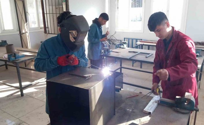 Okul atölyesinde depremzedeler için soba üretiyorlar