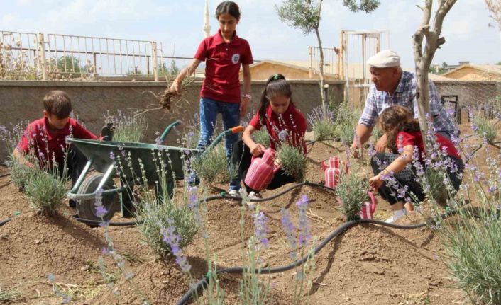 Şırnak’ın İdil ilçesinde Özbek köyü İlk ve Ortaokulunda 10 öğretmen ile 100 öğrenci 250 metrekarelik alanda lavanta bahçesi oluşturdu.