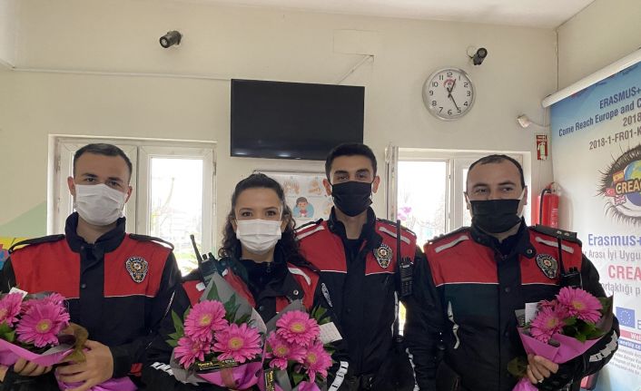 DÜZCE(İHA) – Düzce’de polis ekipleri kavga ihbarı üzerine gittikleri Mustafa Kemal Ortaokulu’nda çocukların sürpriz kutlamasıyla karşılaştı. Kısa süreli şaşkınlık yaşayan polisler, çocuklara teşekkür etti.