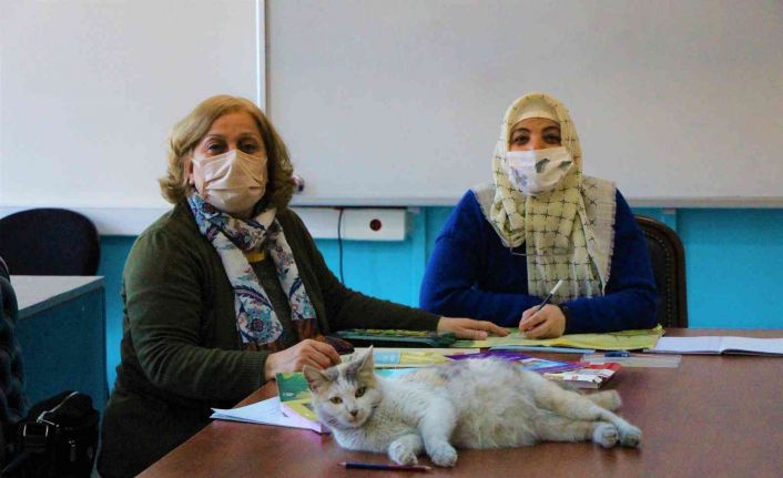 Amasya’da bir sokak kedisi geçen yıl sığındığı Amasya Halk Eğitimi Merkezi’nin maskotu oldu. Günün büyük bölümünü okuma-yazma dersliğinde geçiren ‘Şans’ adlı hamile kedi için tüm imkanlar seferber edilmiş durumda. Veterinere götürülerek aşıları yaptırılan kedi yeri geliyor koridorlarda dolaşıyor yeri geliyor derslere girip masanın üstünde uyuyor.