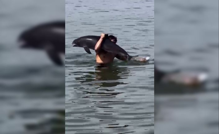 Olay, Mudanya ilçesi Güzelyalı Sahili’nde meydana geldi. Bir vatandaş, ölmüş yunus balığını sırtında taşıyarak kenara getirdi. İlginç anlar, saniye saniye amatör kamera ile kaydedildi.