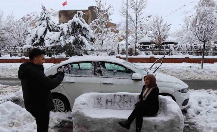 Kar toplamak üzere dışarı çıkan vatandaşlar, ilk başta Çelik’in kardan adam yapacağını düşündü. Ancak, Çelik’in yaptığı şey, herkesin ilgisini çeken bir oturma koltuğu oldu.
