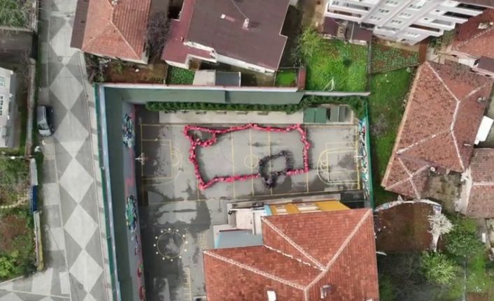 Okul Müdürü Adem Şahin, “Kahramanmaraş merkezli deprem bizleri derin bir üzüntüye boğdu. Okul olarak deprem bölgesine yardım çalışmaları yaptık. Hatay’da kardeş okulumuzla çalışmalar yaptık. Acılarını bir nebze olsun dindirmeye çalıştık. Okul olarak bu derin acımızı dile getiren bir koreografi çalışması yapmaya da karar verdik. 213 öğrencimizle 1 hafta süren çalışma sonucu böyle bir tablo ortaya çıktı. Bu tablo, öğrencilerimizin hissiyatını dile getiren bir tablo. Hissiyatımızı bir nebze olsun dile getirmek istedik” dedi.