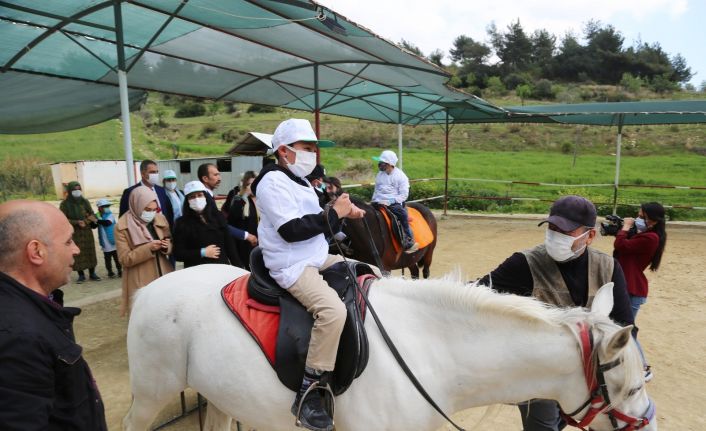 Mersin’in merkez ilçe Toroslar Belediye Başkanı Atsız Afşın Yılmaz, Toroslar Şehit Fikri Dilsiz İlkokulunda eğitim gören özel öğrencileri, at binme etkinliğinde buluşturdu. 2 Nisan Dünya Otizm Farkındalık Günü kapsamında gerçekleştirilen etkinlik, ilçede bulunan At Binme Merkezinde yapıldı. Etkinliğe aileleriyle birlikte katılan otizmli çocuklara, Toroslar Kadın ve Çocuk Danışma Merkezindeki alanında uzman psikologlar ve okul öncesi öğretmenler eşlik etti. Başkan Yılmaz’ın eşi Meltem Yılmaz da çocukları yalnız bırakmayarak, yakından ilgilendi. Başkan Atsız Afşın Yılmaz’ın gönderdiği tişört ve şapkaları takarak eğitmenlerin yardımıyla pistte tur atan özel çocukların mutlulukları gözlerinden okundu.