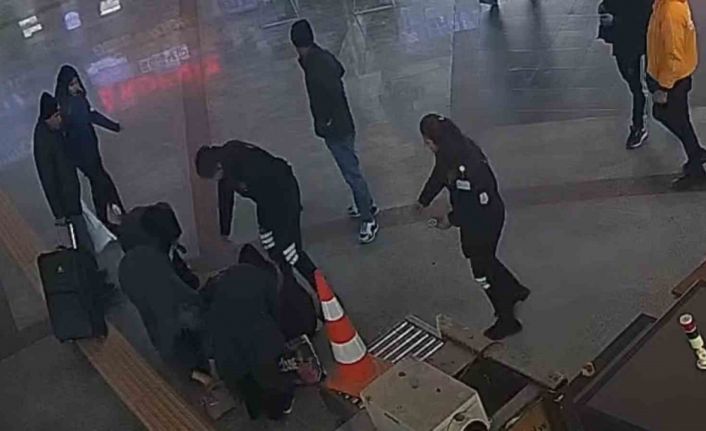 Otogarda bir anda yere yığılan kadına güvenlikten hayat kurtaran müdahale