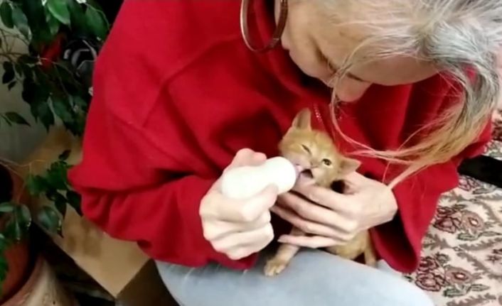 Hayvansever Elif Yıldız Nasuhoğlu, yavru kediyi özel olarak hazırladığı mama ile yaşadığı evde biberonla besliyor. Nasuhoğlu, "Kedimiz doğalı iki ay oldu. Beş kardeş doğmuşlardı. Anneleri kediler doğduktan 8 gün sonra hastalanıp ölünce 5 yavru kedi annesiz kaldı. Kardeşlerden 4’ü hayata tutunamadı. Doğan yavrulardan sadece bir kedimiz hayata tutunabildi. İki aydır yavru kediyi biberonla emzirerek yaşadığın evde yanımda besliyorum. Çok şükür 2 aylık oldu ve büyütebildim. Güzel bir kedi olacak inşallah’’ ifadelerini kullandı.(ÖZEL) Annesi ölen yavru kediyi biberonla besliyor