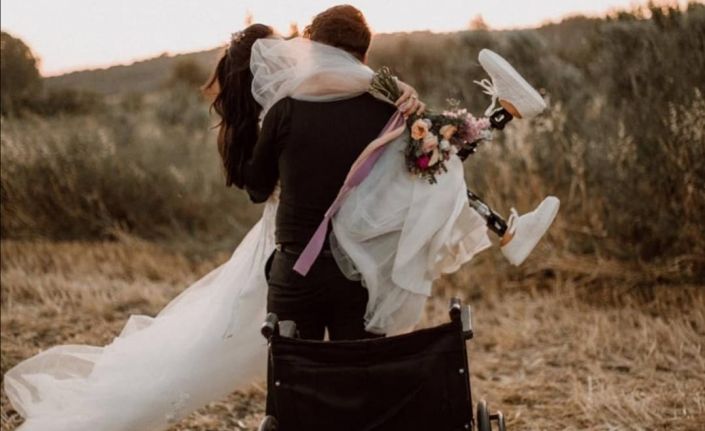 Manisa’da 17 yaşındayken geçirdiği trafik kazası sonucu iki bacağını kaybeden bedensel engelli 22 yaşındaki Mizgin Çaçan kaza sonrası yaşadığı travmayı atlatmasında büyük emeği olan 32 yaşındaki Ramazan Katılmış ile hayatını birleştirdi. Aşkın engel tanımadığını göstererek dünya evine giren genç çiftin tekerlekli sandalye ve protez bacaklarıyla verdikleri düğün pozları büyük beğeni topladı.