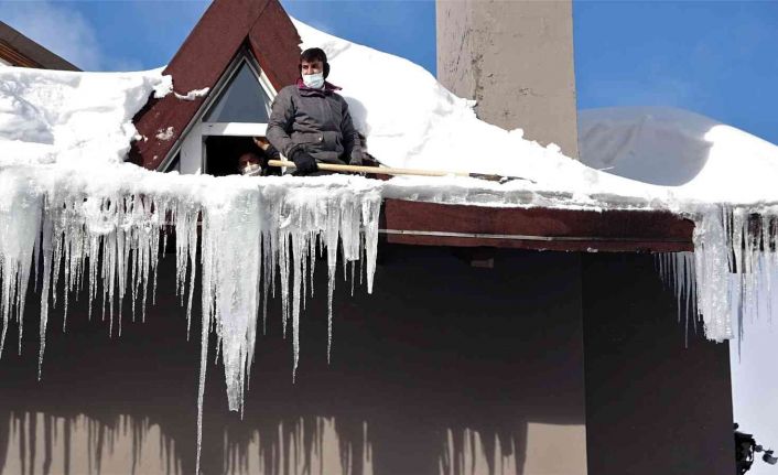Sık sık oluşan sarkıtları temizlediklerini ifade eden otel çalışanları, "Yağan kar ve aşırı soğuk havayla birlikte otellerin çatılarında 5 metreyi bulan sarkıtlar oluştu. Bu sarkıtların her biri 50 ila 100 kilo ağırlıkta vardır. Çatıdan düşmesi durumunda ciddi yaralanma ve ölümlere bile sebebiyet verebilir. Biz de vatandaşların güvenliği için çatılardaki buz sarkıtlarını saatler süren çalışmayla temizliyoruz. Temizlerken güvenlik tedbiri de alıyoruz" dedi.