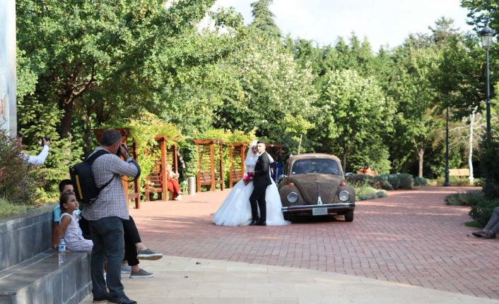 Gaziantep’te yeni evlenecek çiftler, düğün fotoğraflarını bine yakın çiçek ve bitki çeşidi bulunan Botanik Bahçesi’nde çektiriyor.