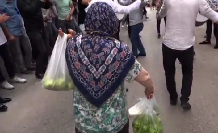 Merkez Osmangazi ilçesine bağlı Bahar Mahallesi’nde gerçekleşen gelin alma merasimine pazardan aldığı malzemelerle katılan yaşlı kadın renkli görüntüler ortaya çıkmasına vesile oldu. Oynayanların arasına giren kadın, kalabalıkla birlikte eğlendi. O ânlar ise kameralara yansıdı.