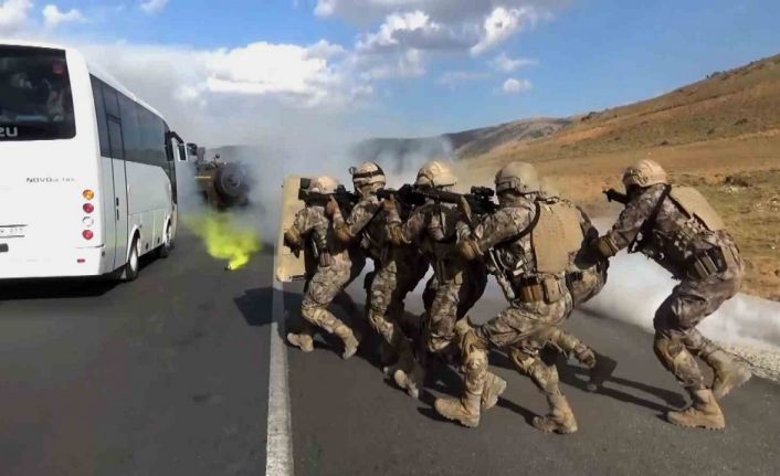 Bitlis’te Özel Harekat polislerinin gerçekleştirdiği tatbikat film sahnelerini aratmazken, sis bombalarının içerisinde rehineleri kurtaran timlerim görüntüsü izleyenleri kendine hayran bıraktı. Senaryo gereği rehin alınan yolcuların serbest bırakılması için müzakerecinin çabalarının sonuç vermemesi üzerine Özel Harekat tarafından araca operasyon düzenlendi.